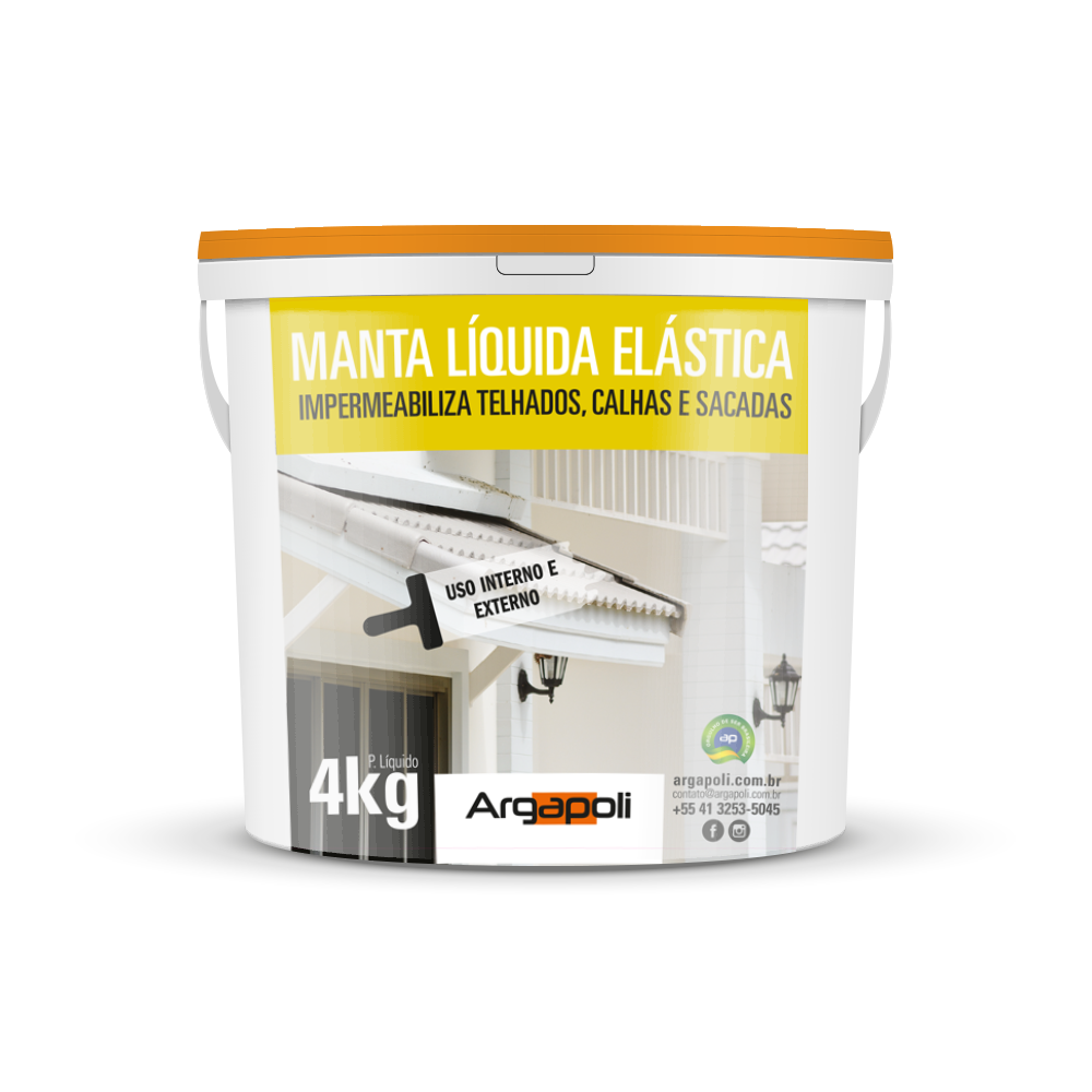 A Manta Líquida Elástica Argapoli TELHADOS, CALHAS E SACADAS, da linha Tecnoplus, é um impermeabilizante elastomérico, resistente a raios UV, indicado para áreas internas e externas como telhados, calhas, lajes e paredes que necessitam de impermeabilização com flexibilidade superior. Após curado,apresenta ótima resistência à água e aderência a todos os substratos, protegendo o ambiente das dilatações e contrações estruturais. Sua coloração branca proporciona maior conforto térmico e alta reflexão dos raios solares.